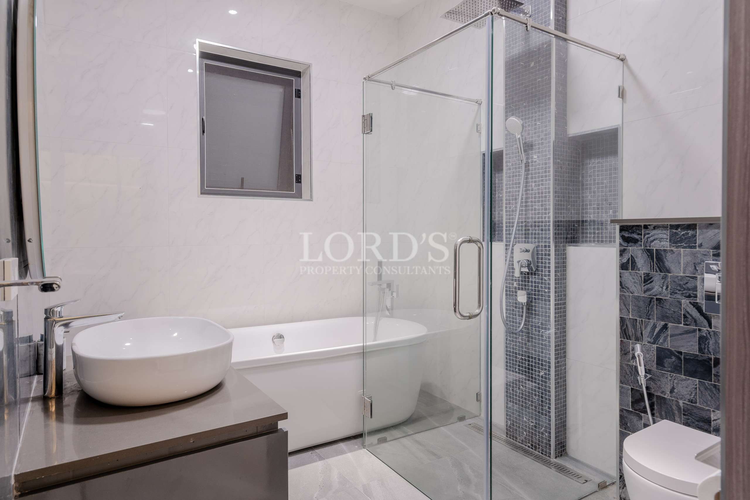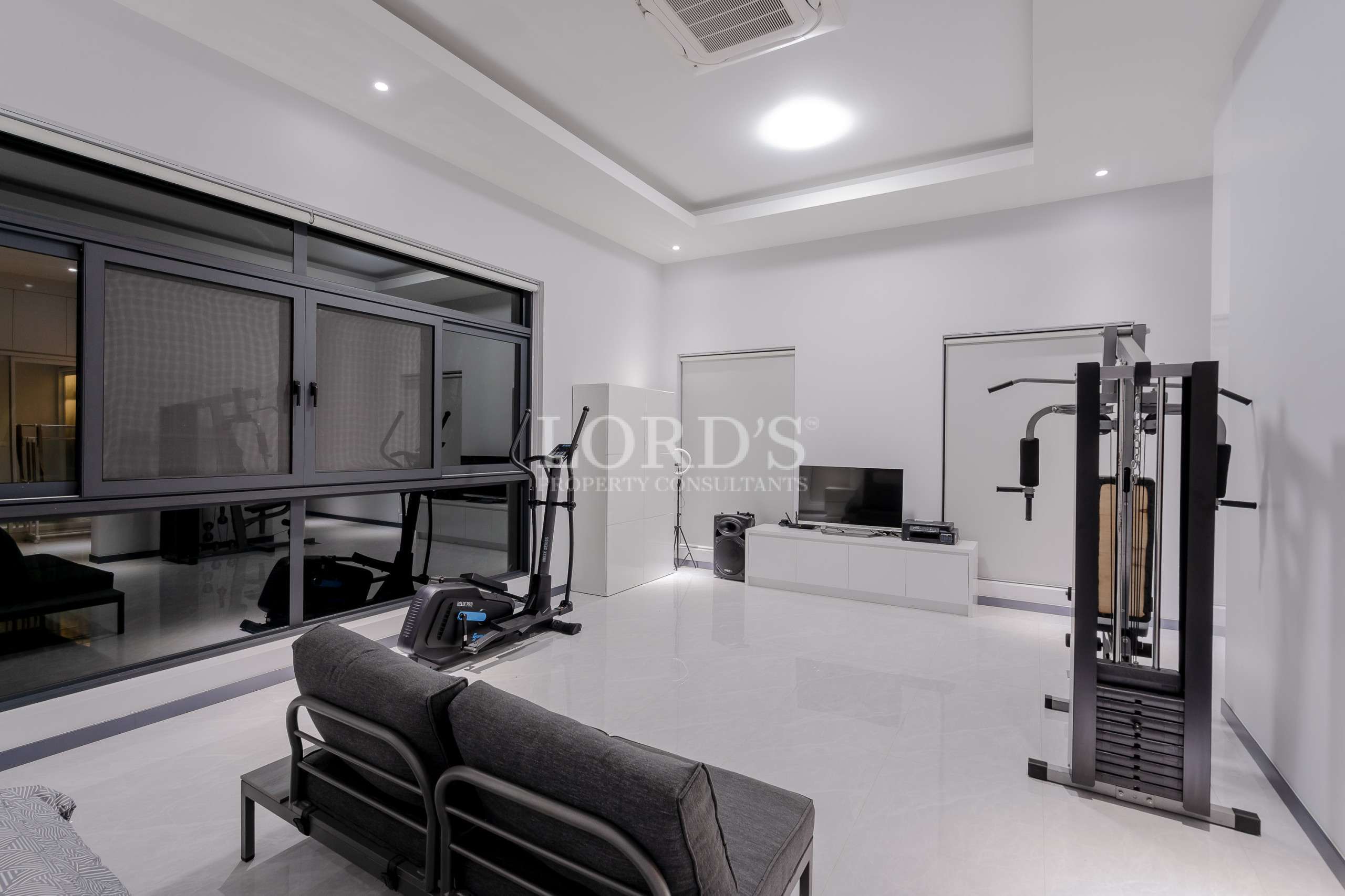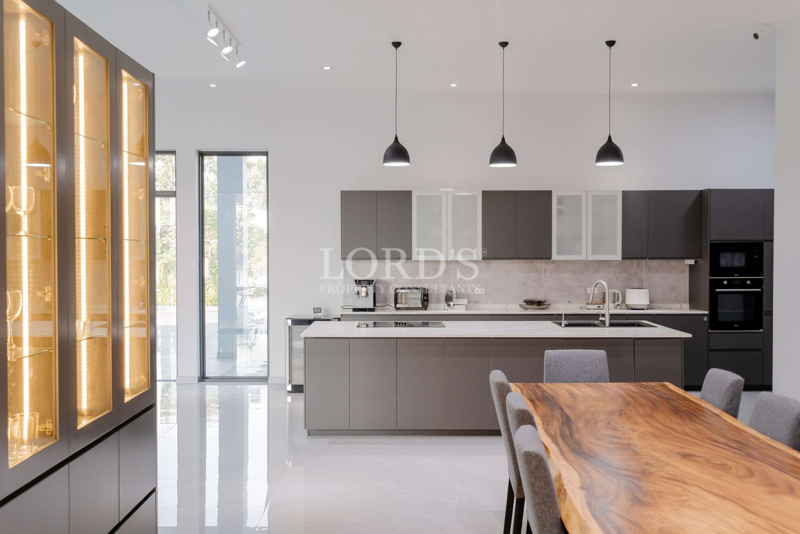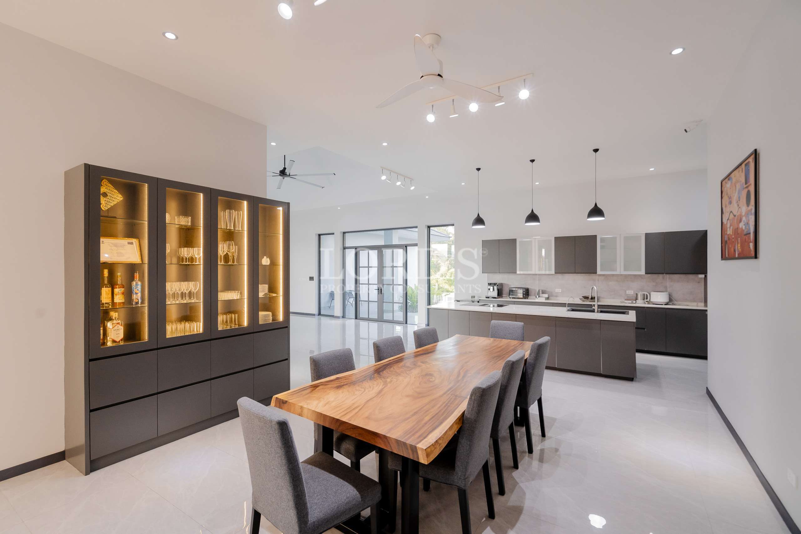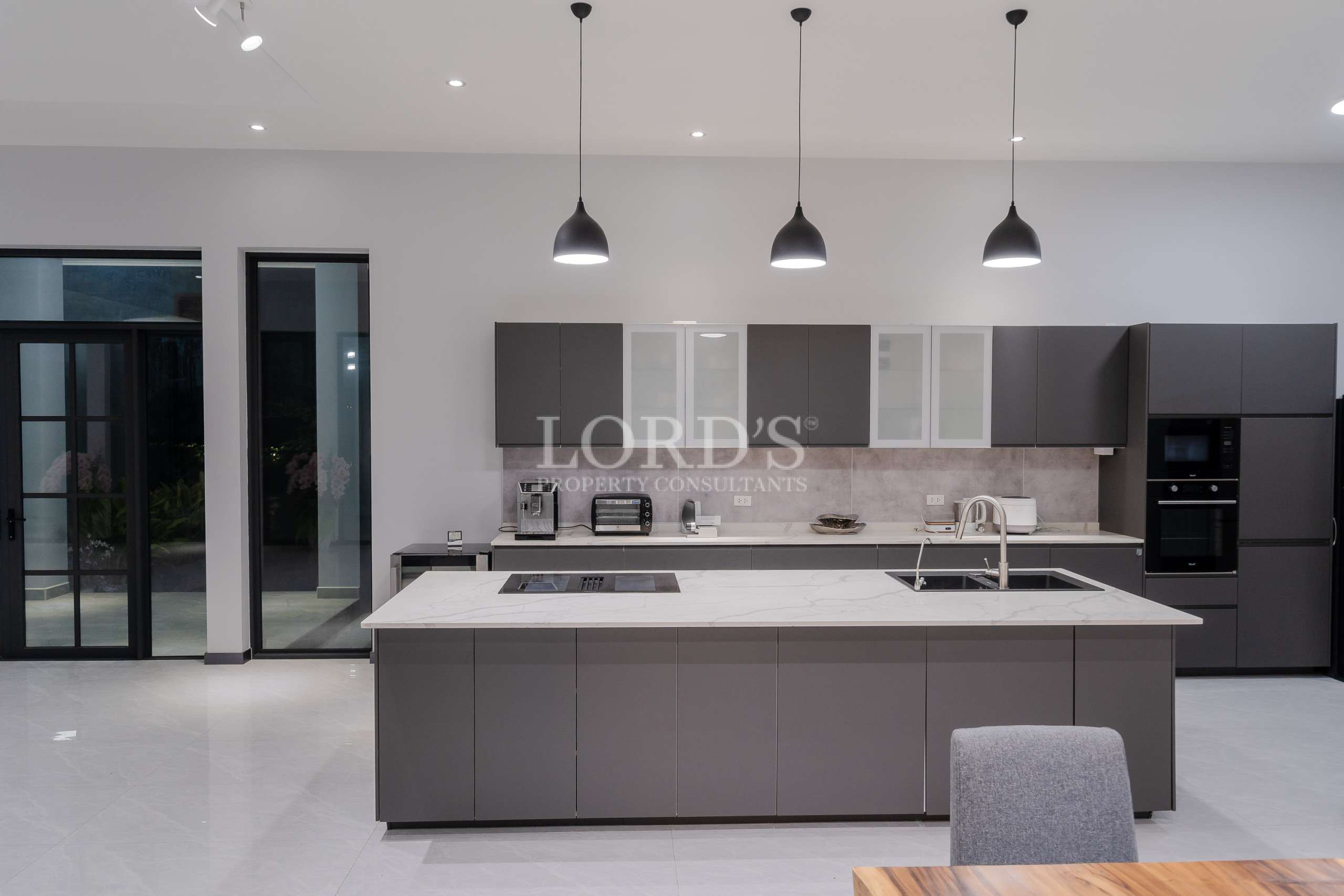 Die Villa besteht aus 5 Schlafzimmern mit eigenem Bad und extra Gästetoilette, einer großen offenen Küche und einem geräumigen Essbereich, außerdem gibt es einen TV/Karaoke-Raum und einen Hauswirtschaftsraum.